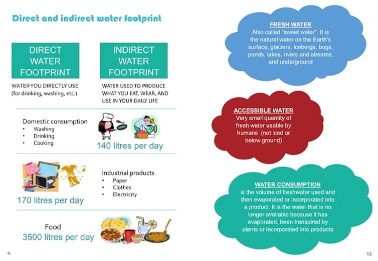 Alrededor del 90% del agua que consumimos se utiliza para producir alimentos. Por lo tanto, son importantes unos sistemas de producción agrícolas adecuados y una buena elección de productos por parte de los consumidores. El agua invisible utilizada en el proceso de producción de un bien cualquiera (agrícola, alimenticio o industrial) se denomina “huella hídrica”.