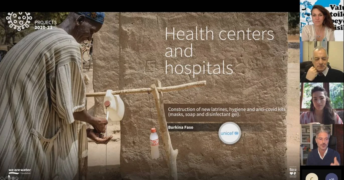Carlos Garriga explicó la experiencia de 11 años de la Fundación We Are Water en proyectos de saneamiento y señaló la correlación que casi siempre existe entre la falta de suministro de agua y el saneamiento, que tiene como consecuencia directa la falta de higiene: “Sin agua, lavarse las manos es imposible", comentó, lo que ha sido evidente en la pandemia de la covid-19, durante la cual la Fundación ha desarrollado proyectos en lugares y contextos especialmente vulnerables, como las escuelas, las zonas fronterizas de migración, los hospitales y las regiones rurales más abandonadas.