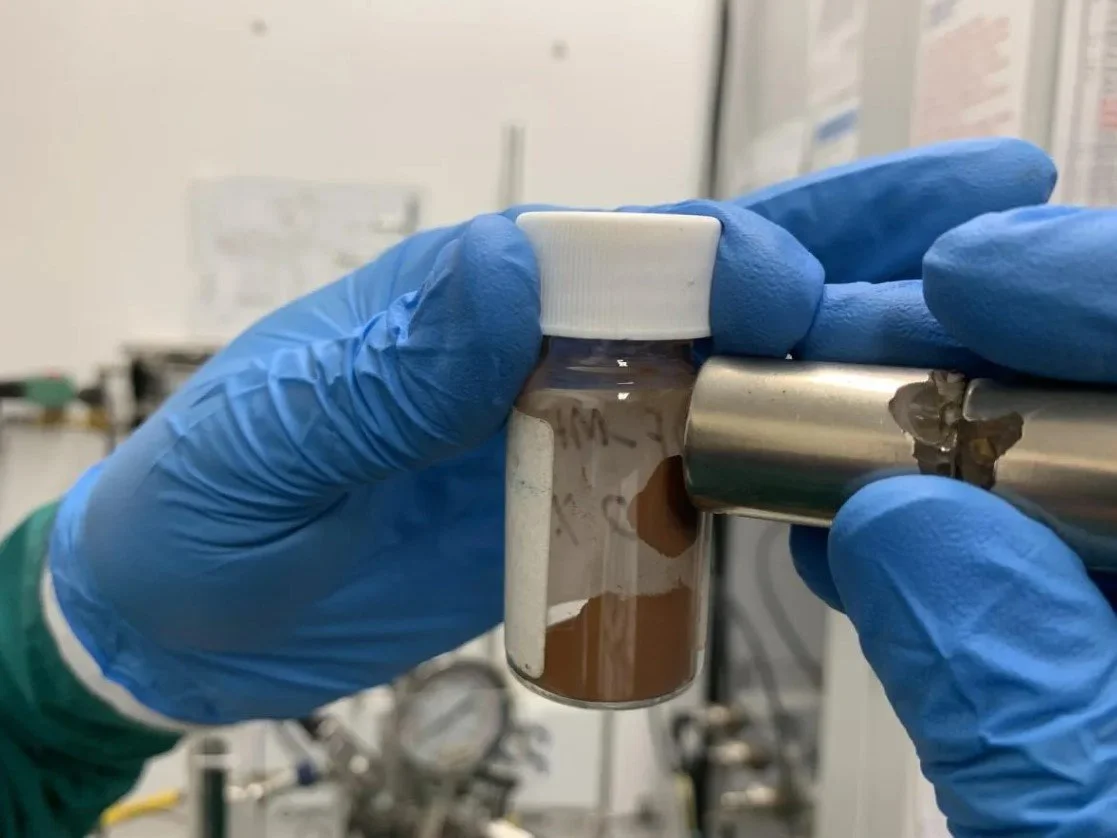 Un imán atrae el polvo fabricado por los investigadores de la Universidad RMIT, en Melbourne, que, aseguran, sirve para eliminar los microplásticos del agua en menos de una hora, EFE/ Universidad RMIT.