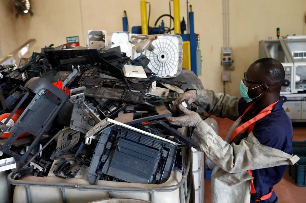 Un empleado maneja residuos electrónicos en el centro de reciclaje y recuperación E-Terra Matter de Lagos, Nigeria, en junio de 2020. TEMILADE ADELAJA (REUTERS)