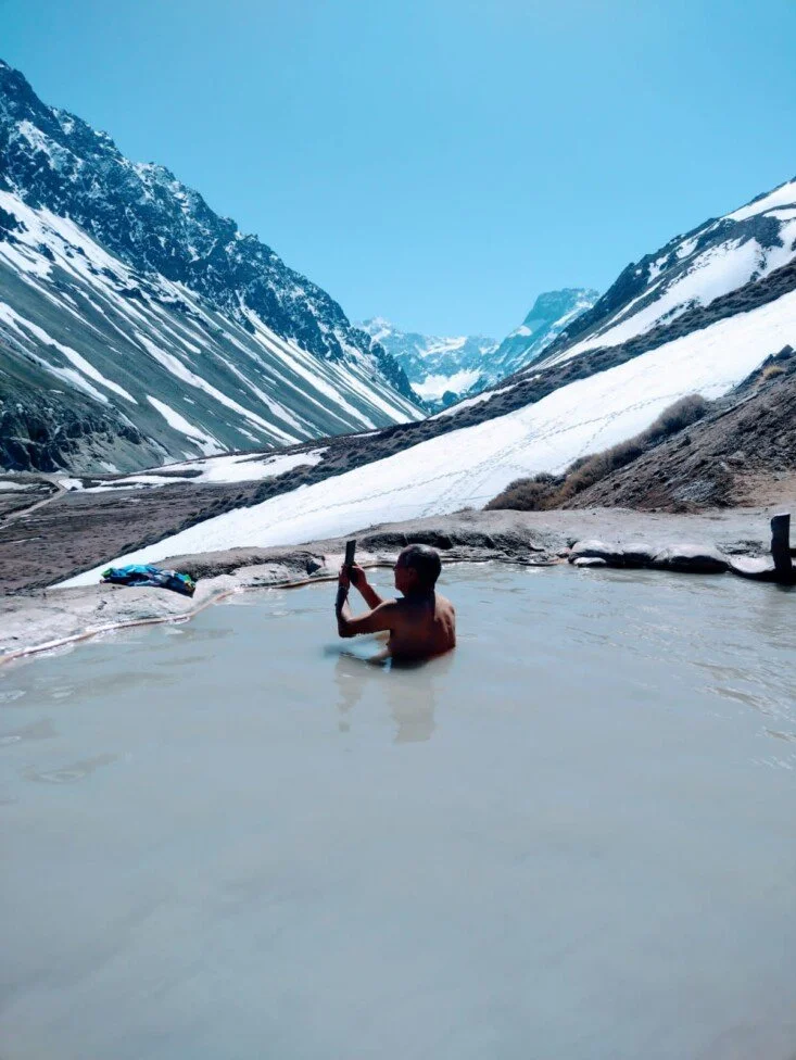 Las chilenas termas de Colina, al aire libre, en plena cordillera andina y apenas a 17 kilómetros de la frontera con Argentina, en el este del país, pueden ahora ser visitadas casi todo el año. Antes era imposible subir en el invierno austral porque el camino se interrumpía por los constantes temporales de lluvia y nieve. Foto: Arturo Allende Peñaloza / IPS
